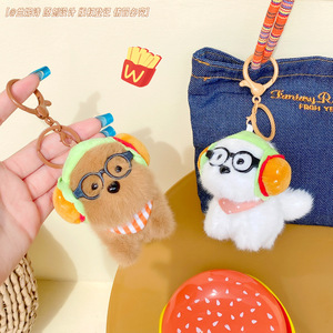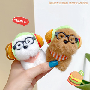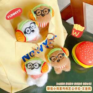 新款正版眼镜小狗系列汉堡狗毛绒公仔钥匙扣趣味狗狗背包挂件挂饰