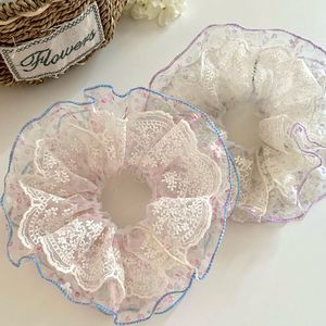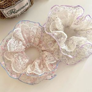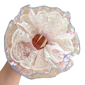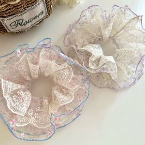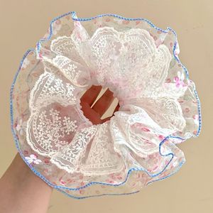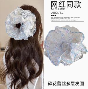 蓝边纱质碎花布艺大肠圈丸子头发绳收腰圈高级感洋气时尚头绳发饰