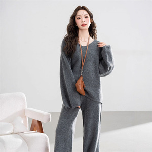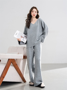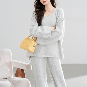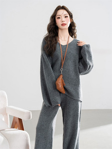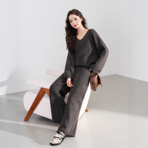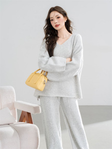 韩国chic慵懒风圆领V领宽松休闲套头针织毛衣+短裤两件套装女