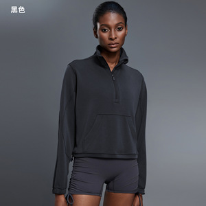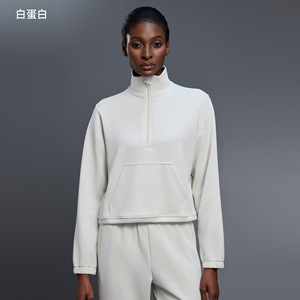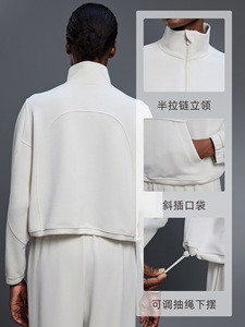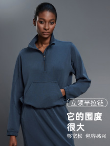 休闲宽松半拉链卫衣女秋季防风立领抽绳下摆健身运动上衣D25136
