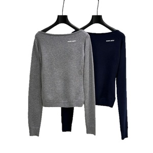 深圳南油批发现货25早秋新款字母嵌花徽标修身一字肩长袖针织衫女