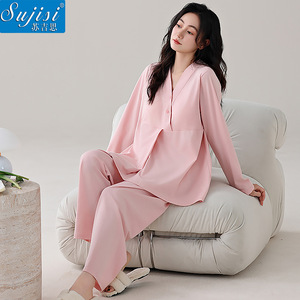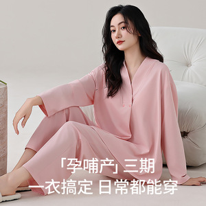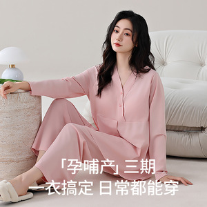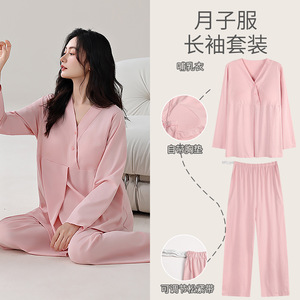 新款月子服妇产后四季透气纯棉带胸垫哺乳期纯秋冬季喂奶家居服