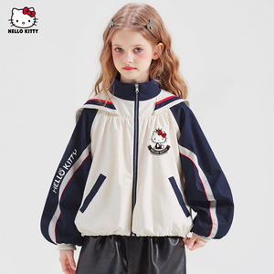 HelloKitty女童秋季甜酷夹克撞色外套2025新款凯蒂猫运动风外套