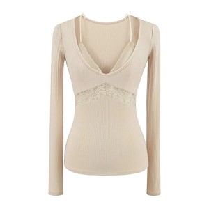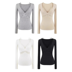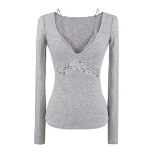 假两件V领打底衫长袖T恤2025秋季女辣妹收腰显瘦设计感纯欲上衣