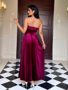 跨境欧美派对晚礼服抹胸纯色裙子连衣裙女装2025秋冬亚马逊独立站