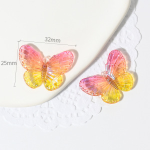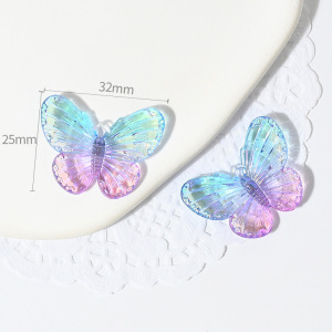 亚克力小配件diy配件炫彩发夹diy七彩蝴蝶奶油胶小配饰巴洛克蝴蝶