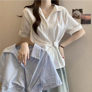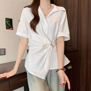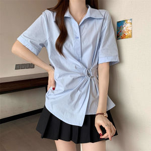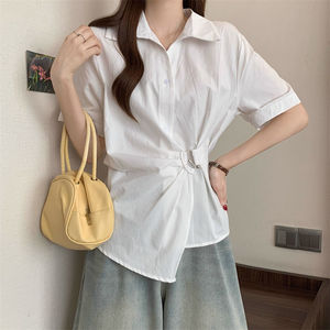 法式收腰短袖不规则衬衫2025夏季显瘦新款设计气质时尚上衣衬衣