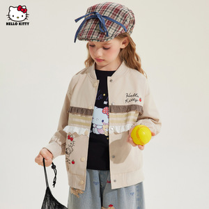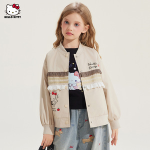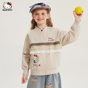 HelloKitty凯蒂猫女童秋季卡通复古花边棒球服2025新款小女孩外套