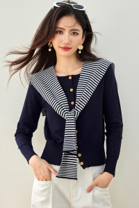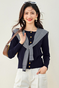 实拍◆现货2024秋冬韩版时尚百搭条纹披肩+针织开衫两件套女上衣