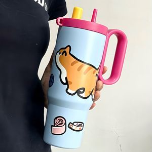 【黄色+毛球小猫贴纸】720ml暮色冰霸保温杯