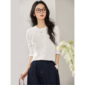 2025秋季新款薄款白色显瘦长袖T恤女百搭韩版辣妹穿搭打底上衣女