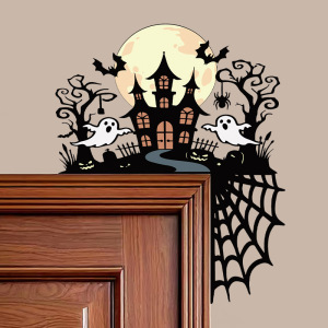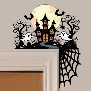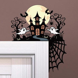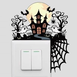 跨境新款万圣节门框装饰贴纸巫师帽子南瓜墙贴开关贴PVC自粘贴纸