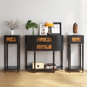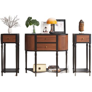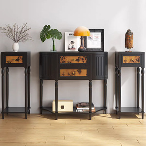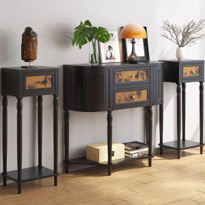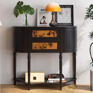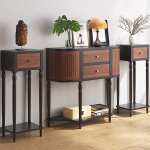中古风实木玄关柜客厅入户装饰柜法式复古20cm超窄条案半圆玄关桌