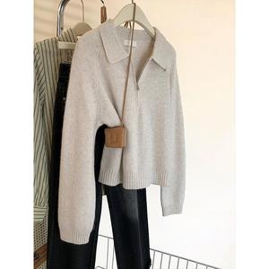 跨境气质针织衫女秋冬季2025新款翻领毛衣长袖polo领宽松休闲上衣