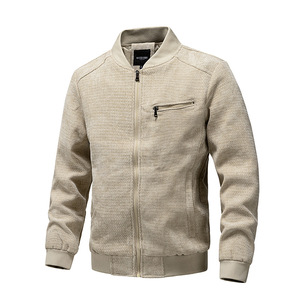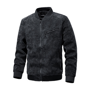 欧美跨境秋冬休闲男重磅棉麻感多拉链商务男装时尚复古夹克男外套