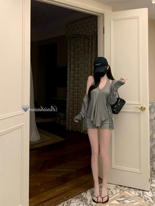 白水籹干枯玫瑰oni 仿羊毛开衫荡领上衣女休闲裤温柔韩系三件套