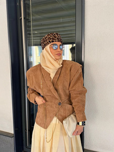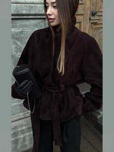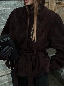 欧美跨境2025新款复古翻领收腰一粒扣外套时尚高级感系带收腰外套