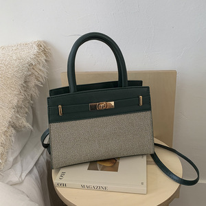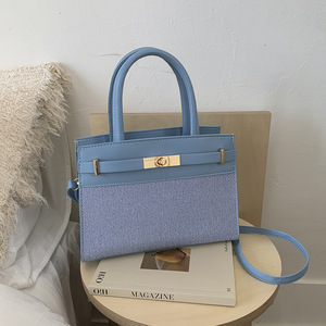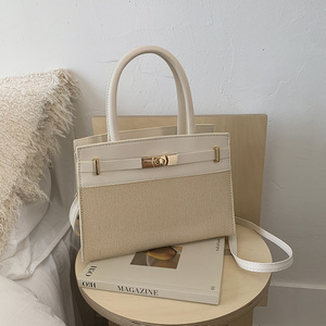 inss网红女士2025新款潮夏季欧美荔枝纹帆布撞色凯莉包手提单肩包