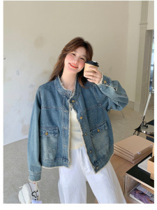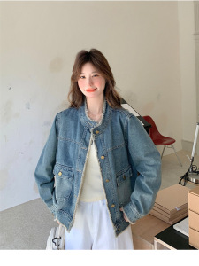 蓝色牛仔外套女2025春秋新款复古减龄毛边宽松显瘦小个子夹克上衣