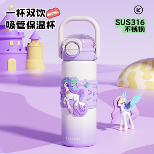 儿童水杯大容量吸管保温杯316不锈钢便携双饮学生卡通杯子新款