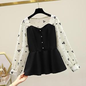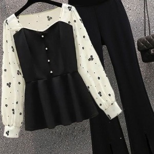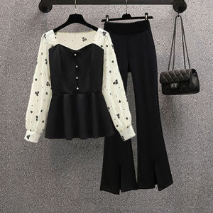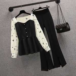 时尚女两件套气质套装减龄衬衫新款大码女装微喇裤显瘦秋季胖妹妹