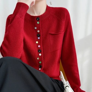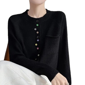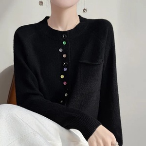 春秋季新款针织彩扣时尚圆领开衫宽松毛衣洋气针织衫气质外套上衣