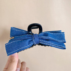 简约牛仔布蝴蝶结发夹女超大号盘发后脑勺抓夹气质百搭个性鲨鱼夹