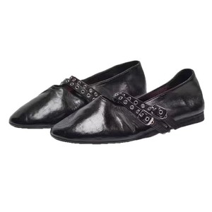 牛皮版~英伦风圆头浅口玛丽珍鞋25年新款一字带铆钉低跟复古单鞋