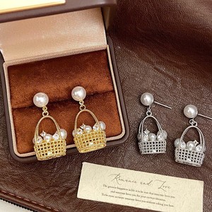 编织花篮锆石珍珠耳环法式轻奢精致高级感耳钉气质优雅设计感耳饰