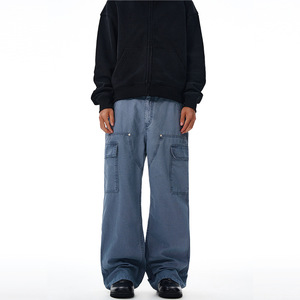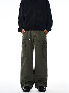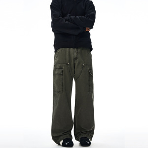 LKTM男装 美式复古水洗珠帆布伐木工装裤男女小众设计感直筒长裤