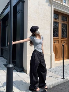 春秋新品设计感工装裤女百搭显瘦休闲直筒裤宽松阔腿裤