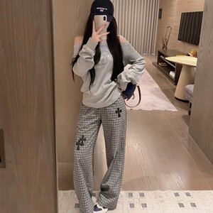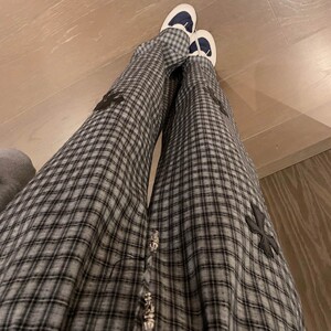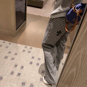 2025早秋季女装新款时尚洋气不规则十字架拼接格子休闲直筒长裤子