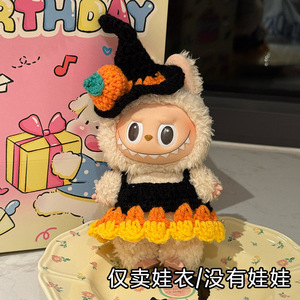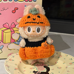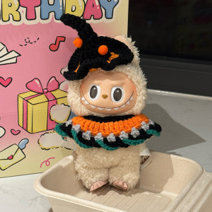 Labubu娃衣帽子万圣节玩偶头套超萌鬼节装饰娃娃衣服手工编织搞怪