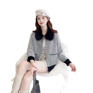 海军领格子毛呢秋冬外套女短款小香风外搭韩版宽松小个子开衫上衣
