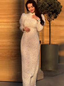 2025年夏季跨境欧美新款外贸长款优雅气质花朵印花收腰礼服连衣裙