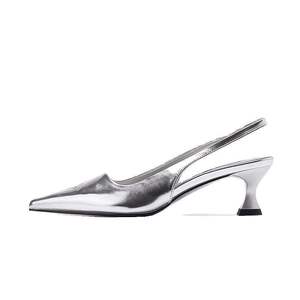 银色方头高跟鞋女2025秋冬新款法式气质百搭浅口猫跟后空包头凉鞋