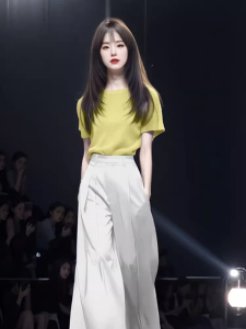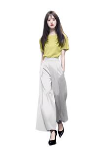黄色上衣+杏色阔腿裤
