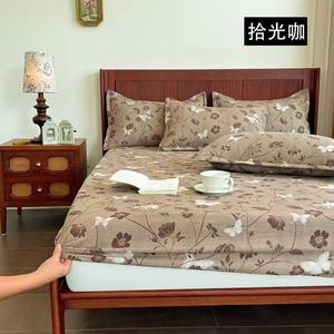 a类小碎花水洗棉床笠皱皱纱枕套席梦思床垫套防尘床罩榻榻米床套