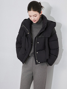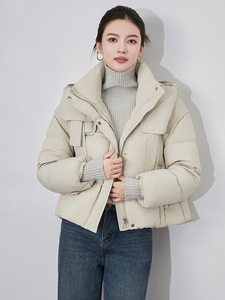 高奢90白鸭绒长短款羽绒服女2025新款加厚拼接PU设计感飘带面包服