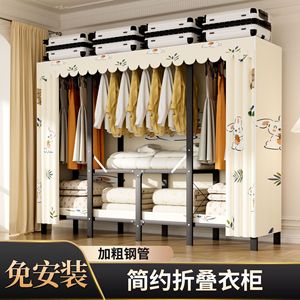 简易衣柜折叠免安装家用卧室出租房钢架加厚钢管加粗收纳耐用衣橱