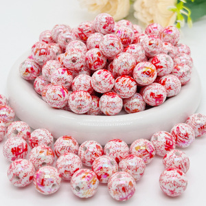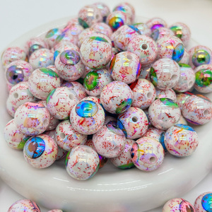 新款万圣节血色恶魔之眼血掌印花圆珠子 diy串珠笔手机链散珠配件