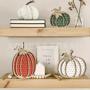跨境热销秋季南瓜造型摆件木制丰收节南瓜装饰木制乡村风南瓜摆件