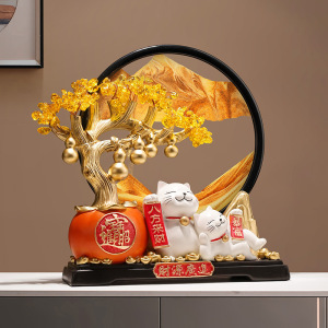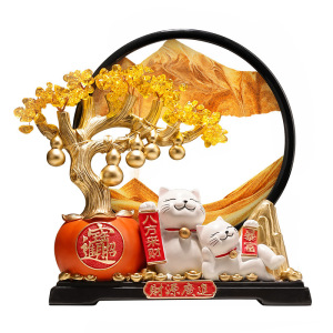 中式发财树流沙画猫摆件客厅装饰新房子搬家礼物乔迁新居开业礼品