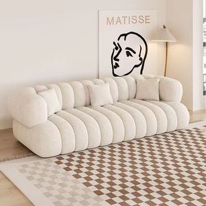 法式现代客厅卧室家具高级风三人羊羔绒小户型棉花糖布艺沙发