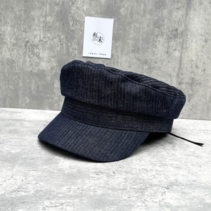 黑蓝细条纹 平顶帽