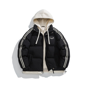 假两件连帽棉衣男冬季2025新款潮牌时尚保暖情侣休闲棉袄外套
