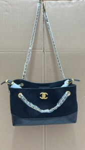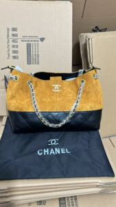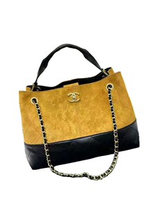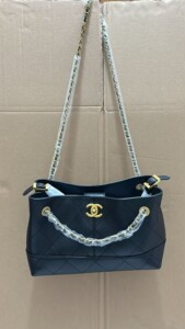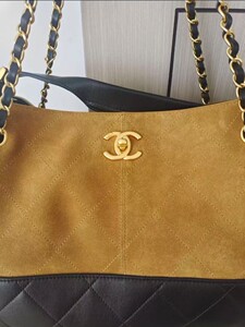 ChaneI25秋冬廘皮双拼链条单肩托特大容量经典菱格手提腋下通勤包