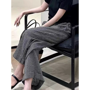 欧货2025黑白条纹薄款裤子女春季小个子慵懒松弛感显瘦休闲阔腿裤