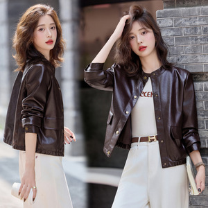 立领皮衣外套女2025秋新款韩版时尚小个子洋气机车皮夹克 WA8115