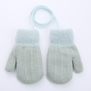 儿童玩雪手套冬季加绒保暖连指防丢绳男女童竖纹SnowMittens防寒